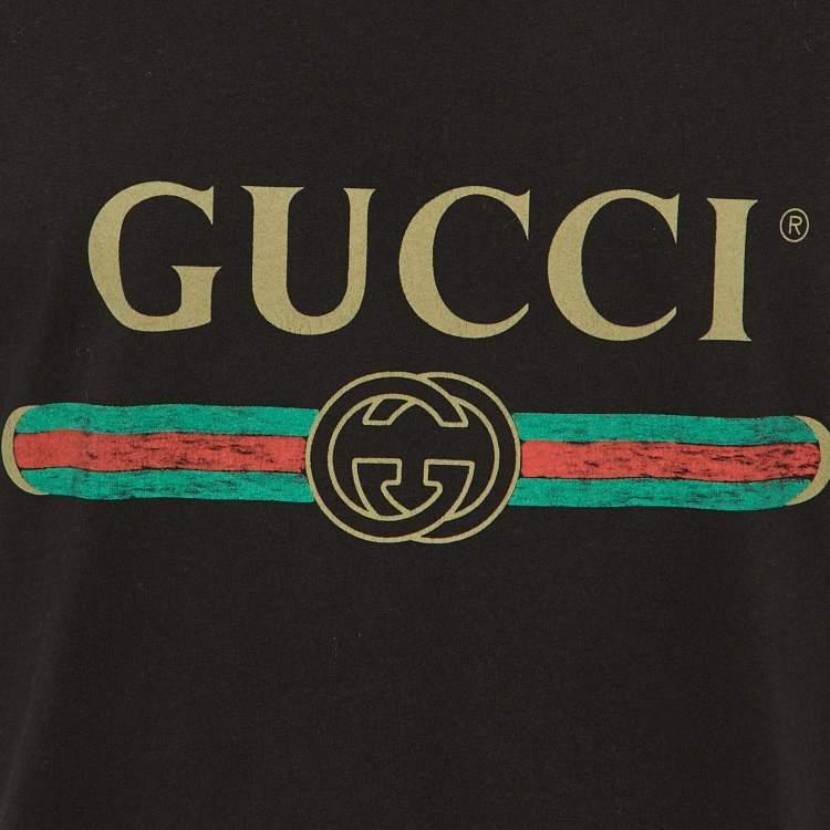 Look what I found on The Luxury Closet! https://theluxurycloset.com/men/gucci-black-logo-printed-cotton-knit-t-shirt-m-p1304631