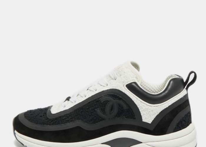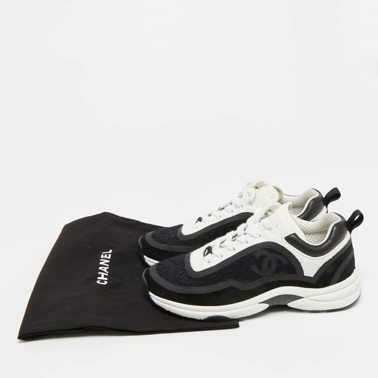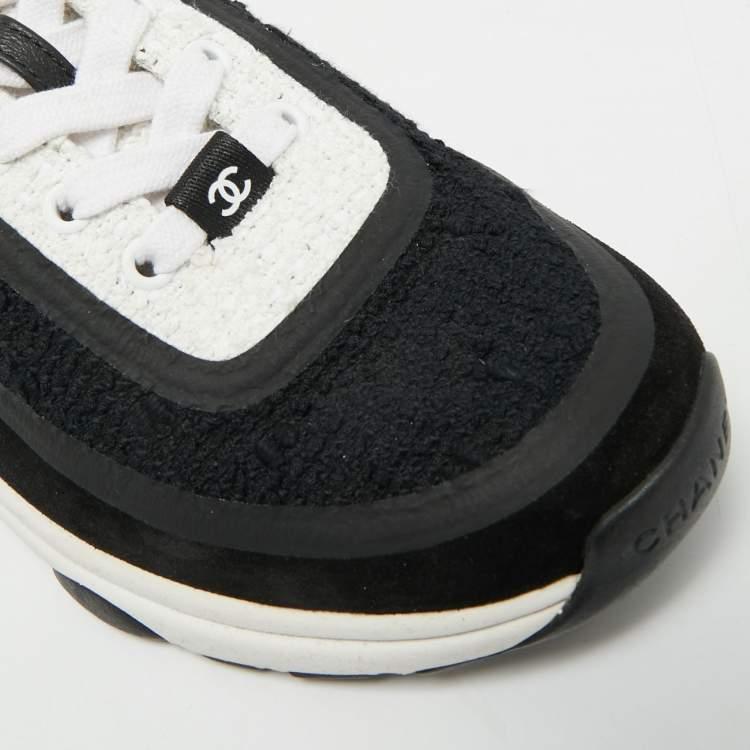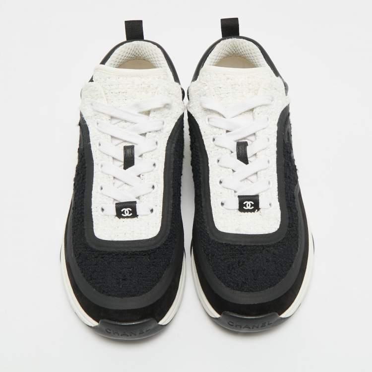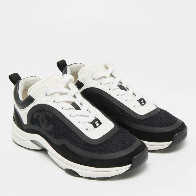 Look what I found on The Luxury Closet! https://theluxurycloset.com/women/chanel-cc-size-38-blackwhite-leather-and-tweed-low-top-sneakers-p1305523