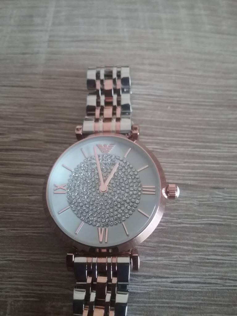 Emporio Armani AR1926 rose gold crystal pavé dial ladies/women watch, , This beautiful as new with not a mark or scratch ladies Armani watch with the original box is a reluctant sale and is only a few months old, Whoever buys this will not be disappointed Cost new over £100 was £45 will now accept £50 must be a bargain