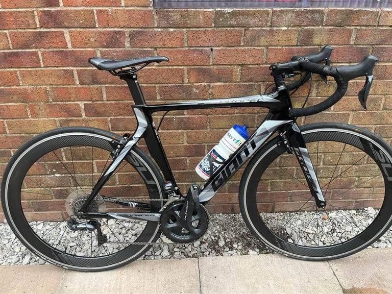 Owned from new! Used under 30 times, Brand new tyres fitted Vittoria Corsa TLR G2.0 Graphene 2.0 and it will also come with a spare. (Selling due to moving Abroad)., Size Small, Excellent condition, There is One small mark which has been covered on the top of the frame which has been covered.The handle bar wrap on one side is slightly worn off as shown in the picture, This is just from damp where it has been leaning against my garage wall. Always been kept in the garage and rode in dry conditions., Includes clip on Pedals, Information manuals, spare parts as seen in photos(reflectors,Bell, Cables,Spare Tyre Valves with Tool, Muc off Tubeless Sealant 3/4 full, Charging Cable for gears)., Size 42 Shimano shoes with clips, worn only a handful of times., Giro helmet included., , Advanced-grade carbon composite frame Advanced-grade carbon composite fork with full-composite OverDrive 2 steerer Shimano Ultegra Di2 11-speed electronic componentry Giant SpeedControl SL brakes Giant SLR 1 Aero composite WheelSystem with Vittoria Corsa TLR G2.0 Graphene 2.0 Tubeless Ready Tyres