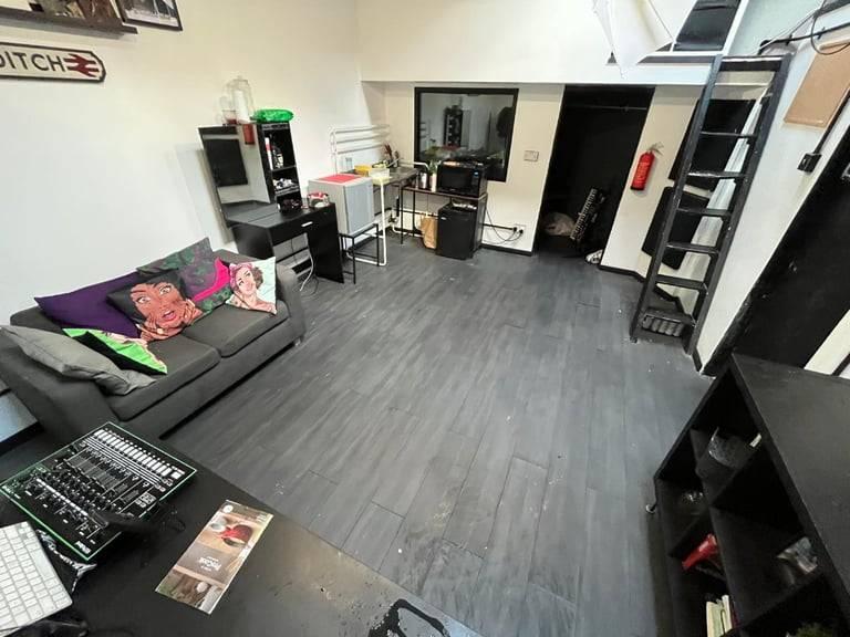 Approx. 300sqft (plus mezzanine storage) first floor canal side studio/workshop space available in Hackney Wick 3 mins from Queen Elizabeth Olympic Park, 6 mins walk from overground station., , Currently used as a media suite, and features:, , - 3.8m high ceiling, - Multiple electric sockets, - Two skylights, - Kitchenette area, - Above corridor storage space (4th pic), - Access to shared bathroom, - 24 hour access, - Bicycle racks available outside building, , This unit is part of a building that has many other creative business in, including music studios, graphic designers, artists, clothing designers and dressmakers, ceramicists and photographers. It is part of a larger creative complex which includes Grow bar, kitchen and creative space - an experiment in ethical and sustainable business (which for the right business could bring many benefits including networking and collaborative projects)., , If you are interested, please call Paul on number provided.